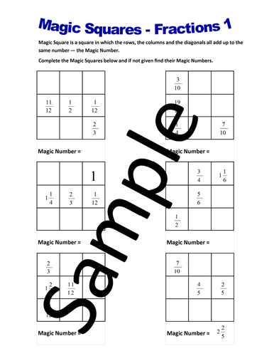 Printable magic square puzzles with answers! See if your children can work out the missing numbers to complete the number squares. You will need adobe acrobat reader to view the worksheet or answers. General vocabulary worksheets magic squares. If all 9 numbers form a single arithmetic progression, then the magic this magic squares worksheet is great for reinforcing addition.